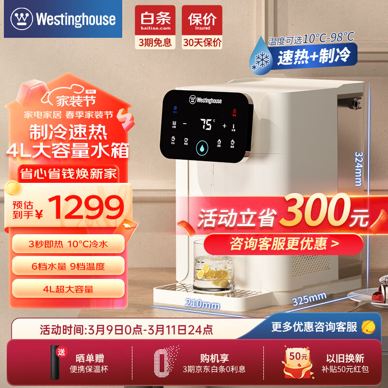 西屋(Westinghouse)台式即热式饮水机 小型饮水机家用 办公台式客厅台面即热饮水机 即热电子制冷饮水机 WFH40-W2S制冷饮水机 即热制冷型价格:1599.00元!