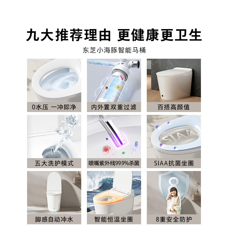 东芝(TOSHIBA)小海豚智能马桶小户型带水箱全功能虹吸式家用电动坐便器A400-305价格:3659.00元!