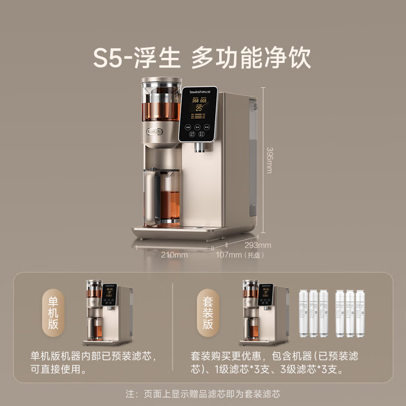 碧云泉S5含锶矿物质制冷养生茶艺净化加热一体净水器家用冰水直饮反渗透过滤即热净饮机智能茶道速热控温 S5-浮生-套装版价格:5499.00元!