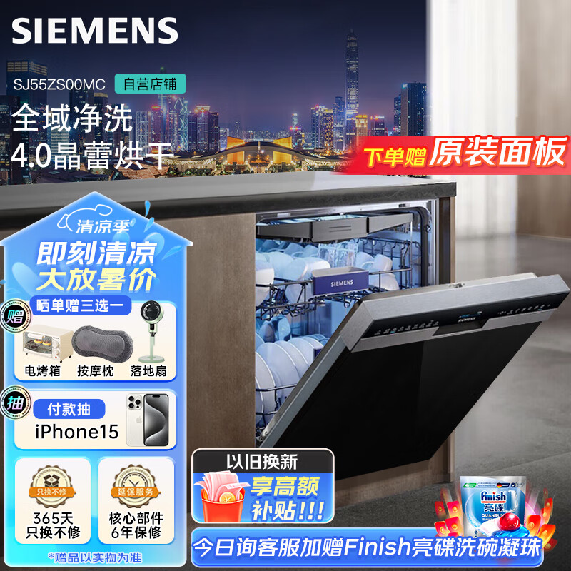 西门子洗碗机16套大容量全能舱pro晶蕾烘干烘存嵌入式家居互联洗碗机SJ55ZS00MC带黑色面板价格:10800.00元!