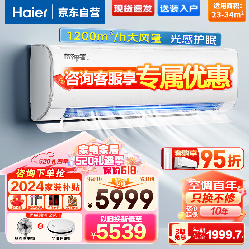 海尔(Haier)空调挂机新一级能效雷神者3匹壁挂式变频冷暖 防直吹3D除菌舱 自清洁节能卧室客厅空调 72KEA81价格:7699.00元!