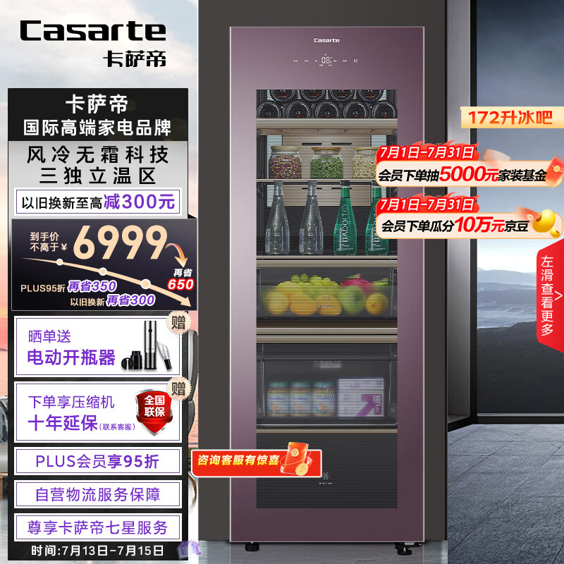 卡萨帝(Casarte)172升风冷三温区家用冷藏柜暖藏冰吧 茶叶饮料水果保鲜柜小型冰箱LC-172WLC78A1U1价格:6999.00元!