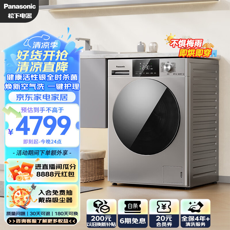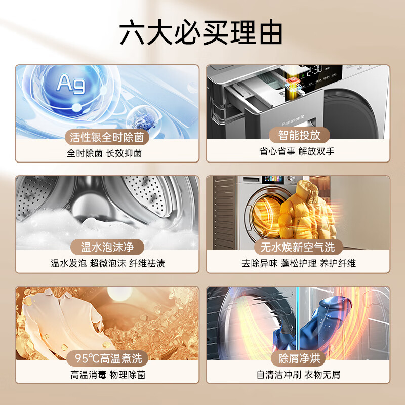 松下(Panasonic)滚筒洗衣机全自动 超薄全嵌 10公斤 洗烘一体 智能投放 活性银除菌 温水泡沫净XQG100-811DM价格:4799.00元!