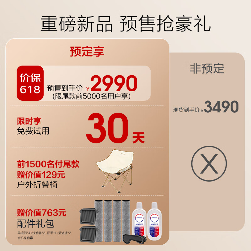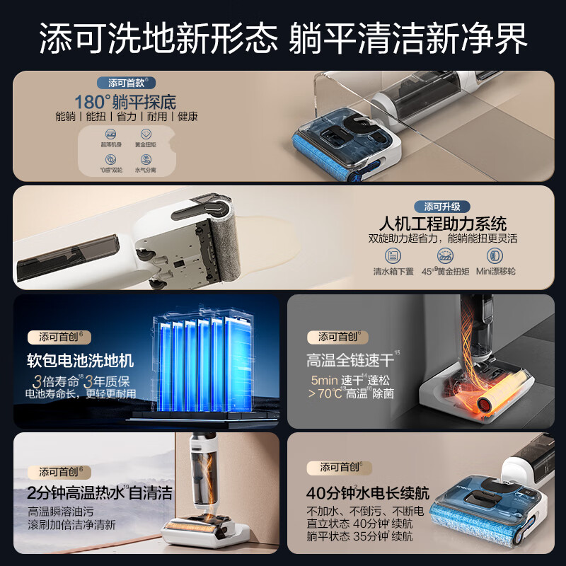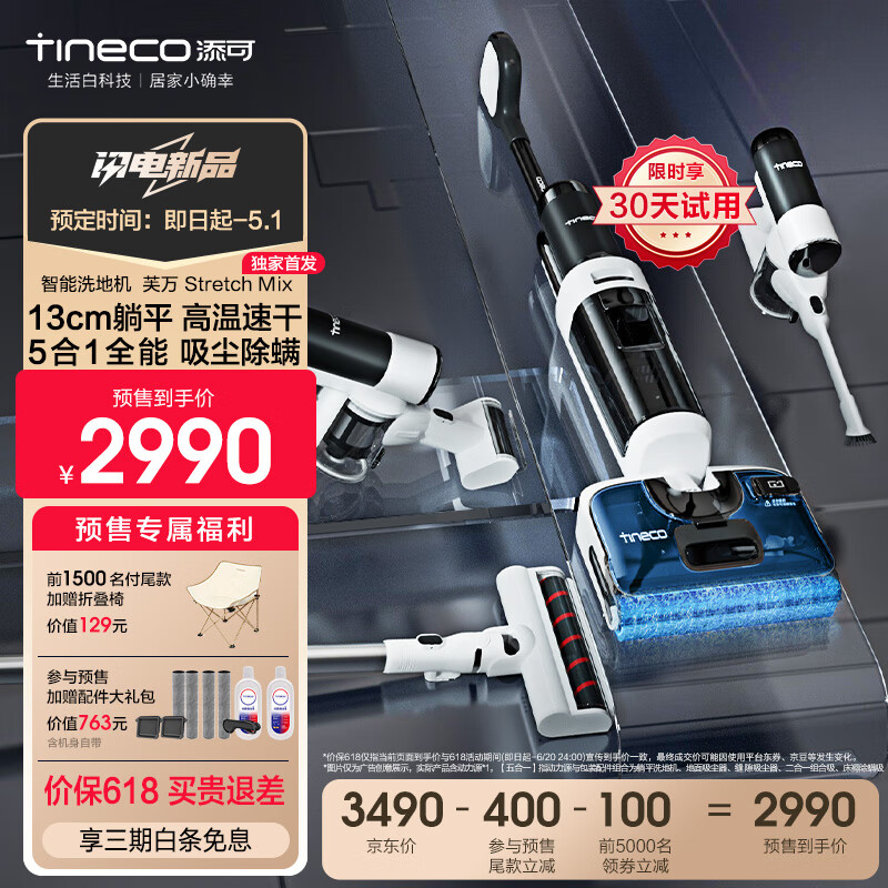 添可(TINECO)【预售到手2990】无线智能洗地机芙万Stretch Mix 180°躺平全屋清洁多合一吸拖一体家用吸尘器价格:3090.00元!