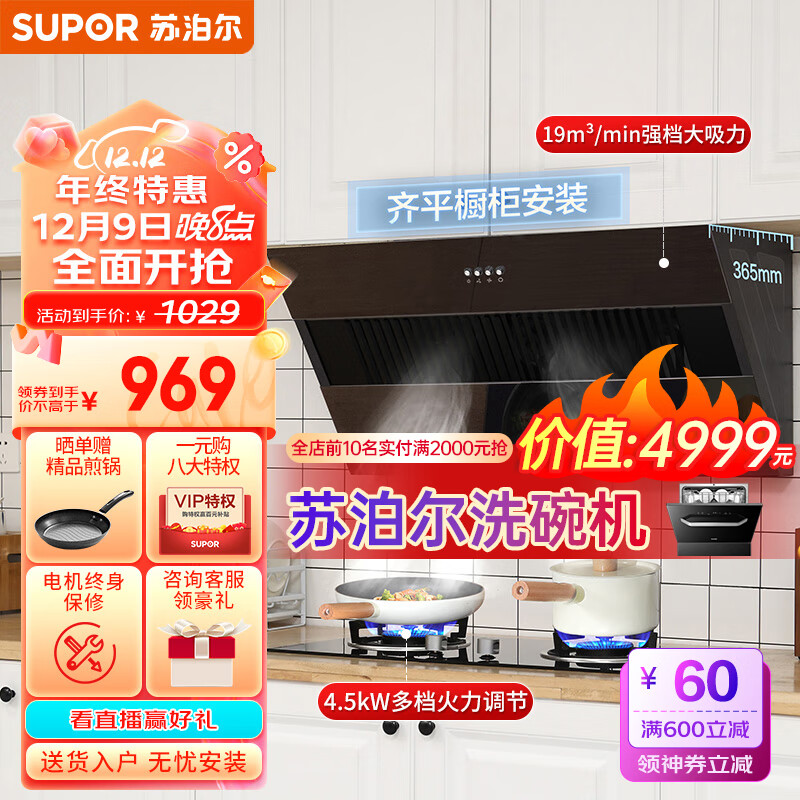 苏泊尔(SUPOR)抽油烟机燃气灶套装 家用小尺寸大吸力 19立方侧吸式小户型烟灶套装DJ13S+DB19液化气价格:1029.00元!