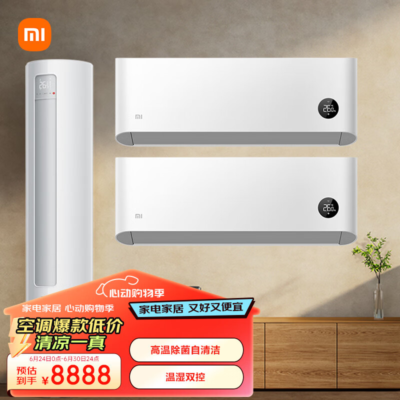 小米【巨省电套装一柜两挂】巨省电系列 3匹一级柜机+1.5匹一级挂机+1.5匹一级挂机 变频冷暖价格:8888.00元!