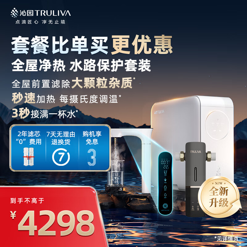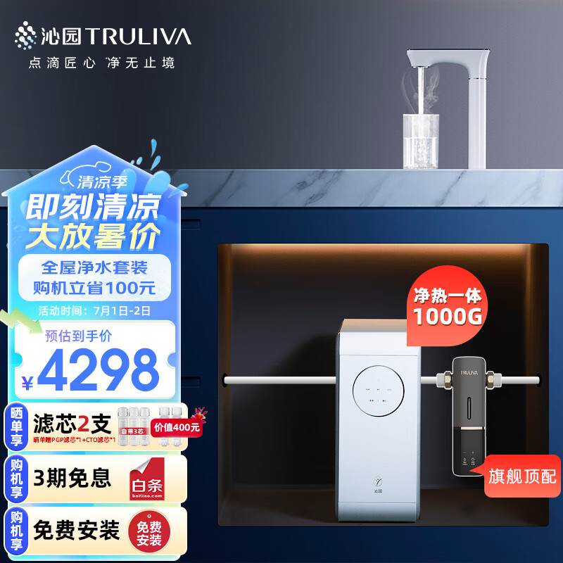 沁园(TRULIVA)曜日1000G净热一体机 二件套装净水器UR-S51048H+智能自动冲洗前置过滤器P-O7712价格:4298.00元!
