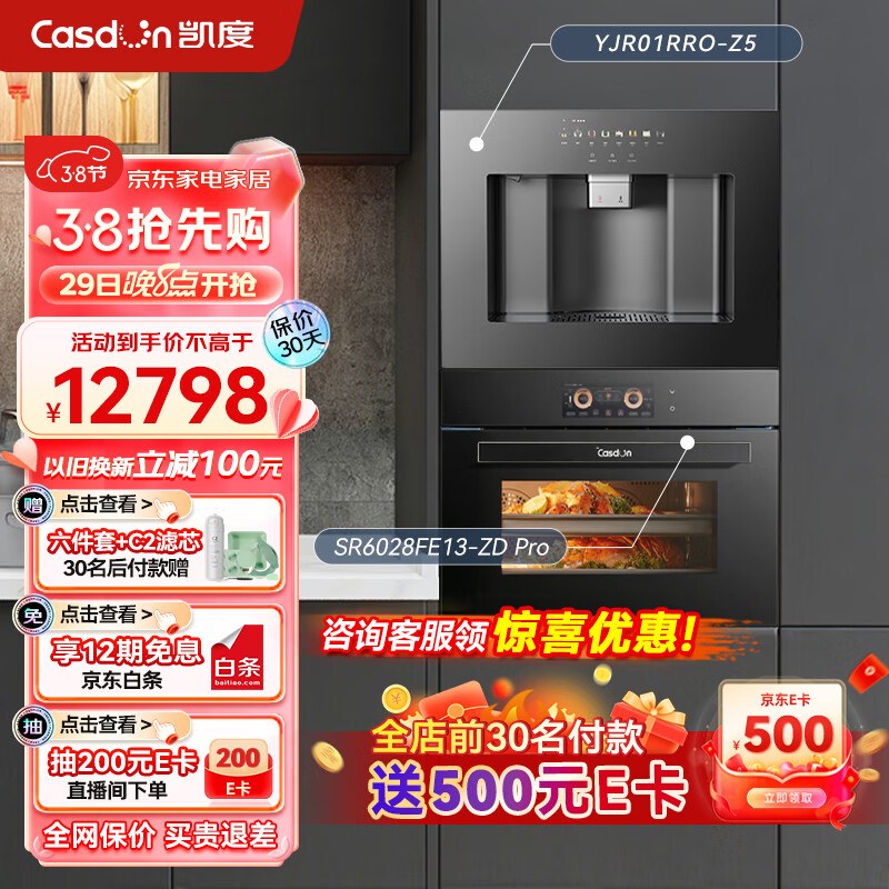 凯度(CASDON)嵌入式双热风蒸烤炸炖一体蒸烤箱SR6028FE13-ZD Pro+Z5嵌入式直饮机一体净饮机价格:12798.00元!