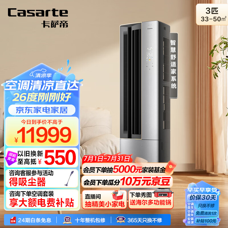 卡萨帝(Casarte)3匹 星云 双极离子除菌 复合软风 立式空调柜机 一级能效 智能变频 CAP7216BAB(81)VU1价格:11999.00元!
