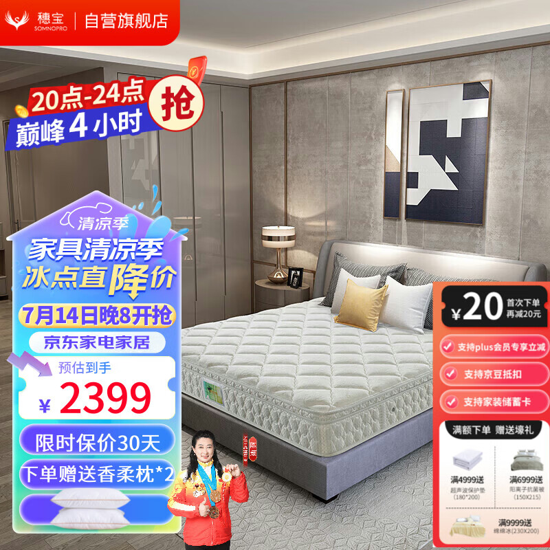 穗宝(SYMBOL)床垫进口天然乳胶环保椰棕弹簧床垫软硬适中 宁睡P 1.35米*1.9米价格:2949.00元!