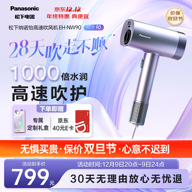 松下(Panasonic)高速吹风机家用大功率吹头发电吹风大风力速干护发 纳诺怡护发吹筒紫色NW90绮光镭射紫价格:799.00元!