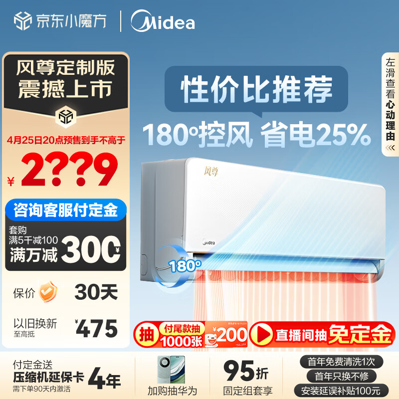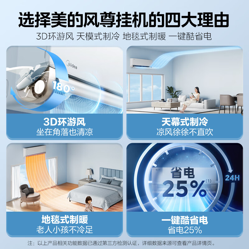 美的(Midea)空调 1.5匹 风尊 新一级能效 变频冷暖 自清洁 壁挂式空调挂机 智能家电 KFR-35GW/N8MXC1-J1价格:3099.00元!