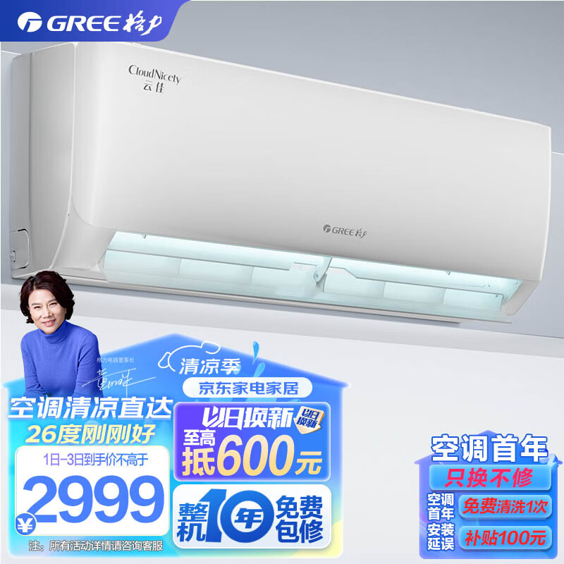 格力(GREE)1.5匹 云佳 新一级能效 变频冷暖 自清洁 壁挂式空调挂机KFR-35GW/NhGc1B价格:2999.00元!