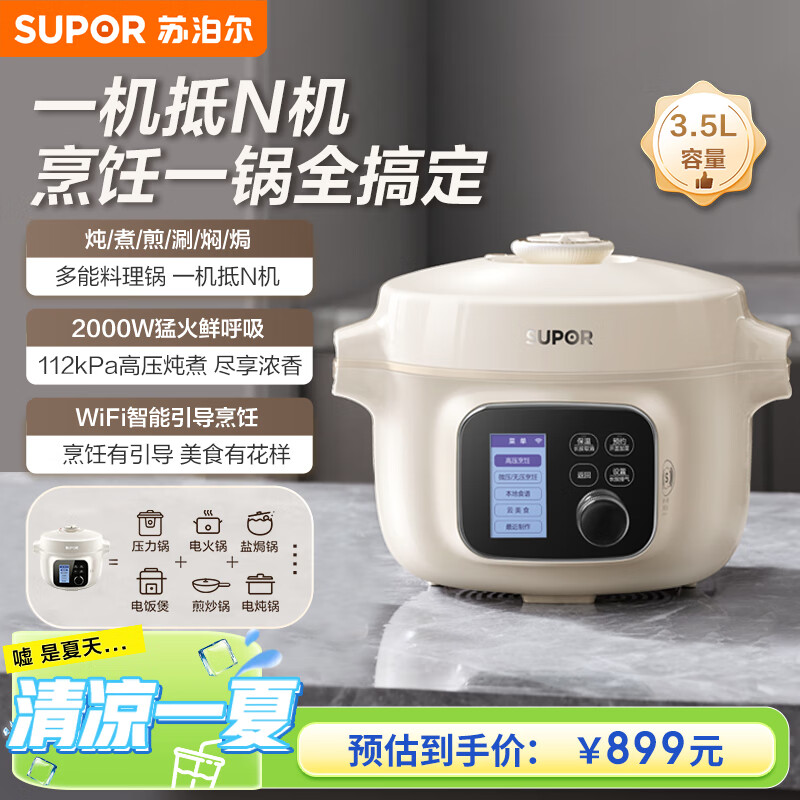 苏泊尔(SUPOR)白豚系列料理快锅电锅3.5L家用多功能自动排气高压烹饪 电饭煲不沾智能预约SY-35YZ8099高压锅价格:899.00元!