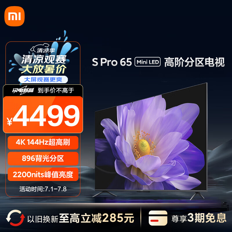 小米电视 S Pro Mini LED 65英寸 2200nits 896分区 4GB+64GB 澎湃OS系统 欧洲杯电视机L65MA-SM价格:4499.00元!