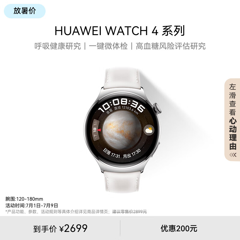 华为【送礼送健康】WATCH 4华为手表智能手表呼吸健康研究一键微体检华为运动手表金星白价格:2699.00元!