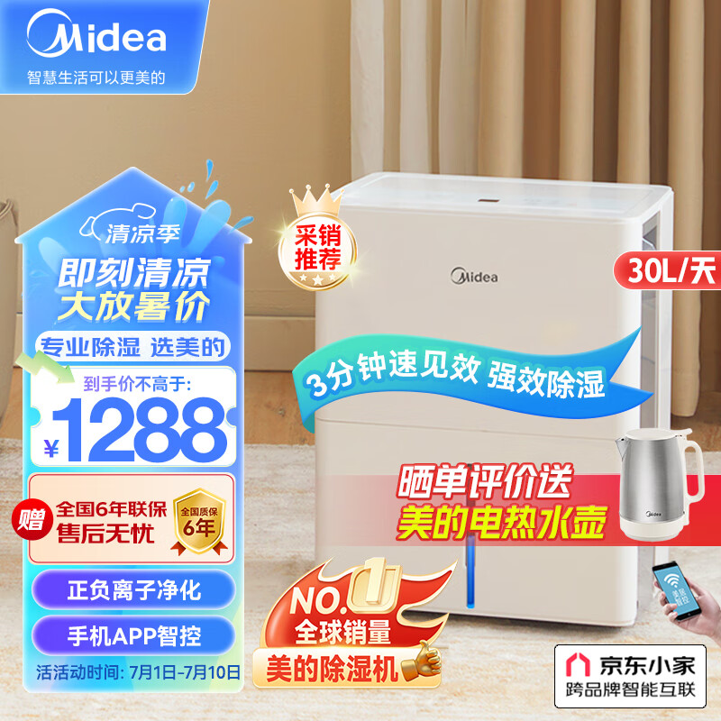 美的(Midea)除湿机/抽湿机 京东小家智能生态 小海绵除湿机/除湿量30升/天 家用轻音app智控CF30BD/N7-DP5价格:1488.00元!