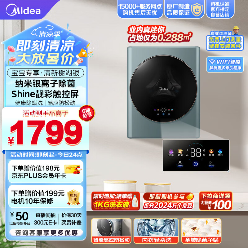 美的(Midea)壁挂洗衣机 MG30MINIPRO 3公斤 迷你滚筒洗衣机全自动 儿童洗衣机 婴儿洗衣机小型 挂壁洗衣机价格:1799.00元!