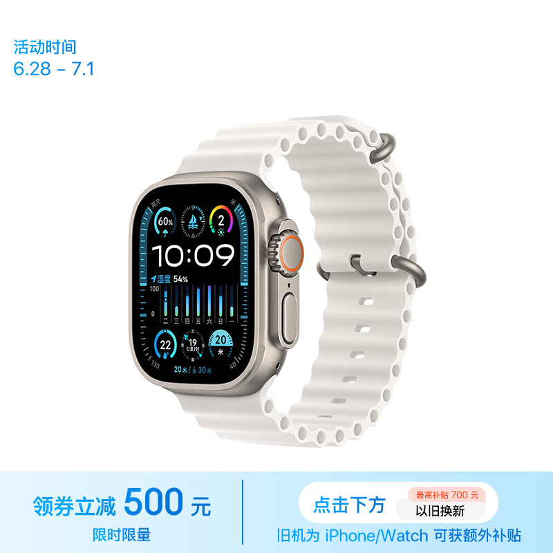 Apple/苹果 Watch Ultra2 智能手表 GPS+蜂窝款 49毫米 钛金属表壳白色海洋表带 健康手表 MRF93CH/A价格:6499.00元!