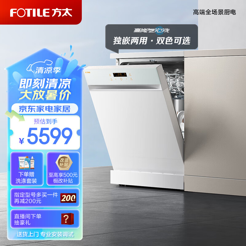 方太洗碗机嵌入式家用 高能气泡洗 15套大容量 独嵌两用 除幽门螺旋杆菌 7天干燥长存 V6M 白价格:5599.00元!