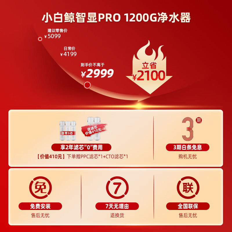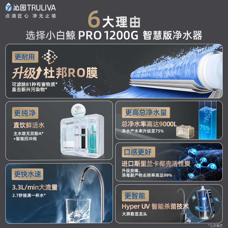 沁园(TRULIVA)小白鲸智显pro1200G净水器 触控屏家用厨下式直饮机5年RO反渗透过滤器3.3L/分 UR-S51275价格:2999.00元!