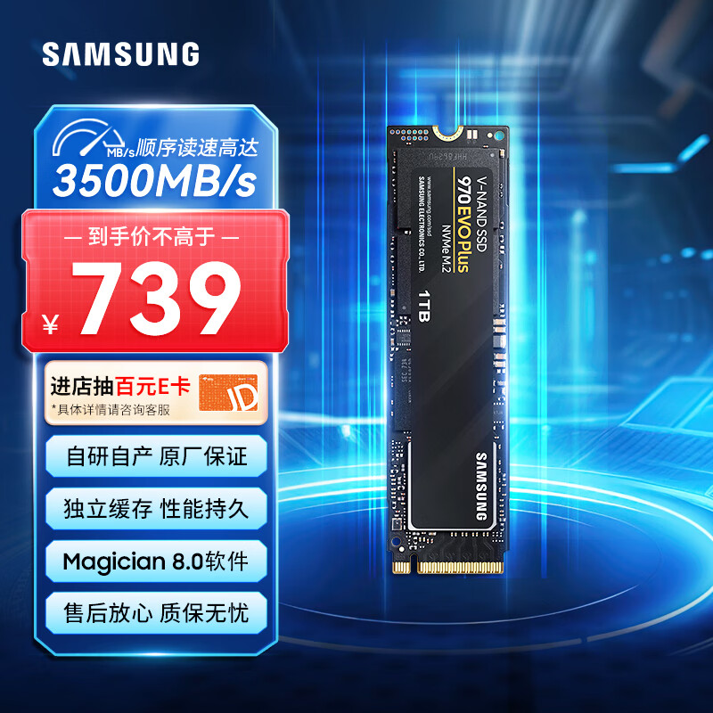 三星(SAMSUNG)1TB SSD固态硬盘 M.2接口(NVMe协议) 独立缓存 AI电脑配件 970 EVO Plus价格:739.00元!