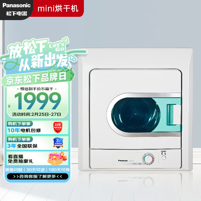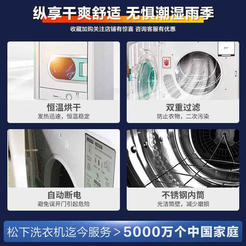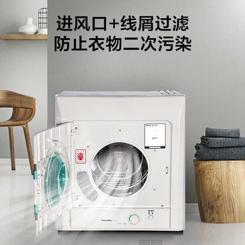 松下(Panasonic)烘干机 4.5kg烘干机家用 干衣机 小型 婴儿 陶瓷发热 冷暖风干衣 双重过滤 自动断电 NH45-19T价格:1999.00元!