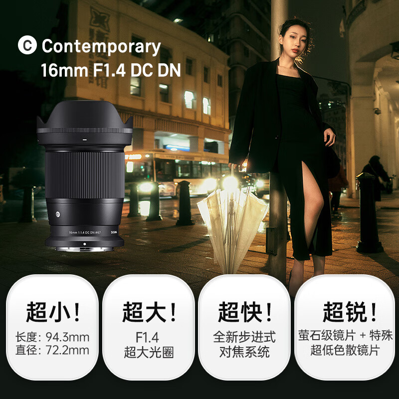 适马(SIGMA)16mm F1.4 DC DN|Contemporary 半画幅 大光圈广角定焦镜头 微单风光(尼康Z卡口)价格:2999.00元!