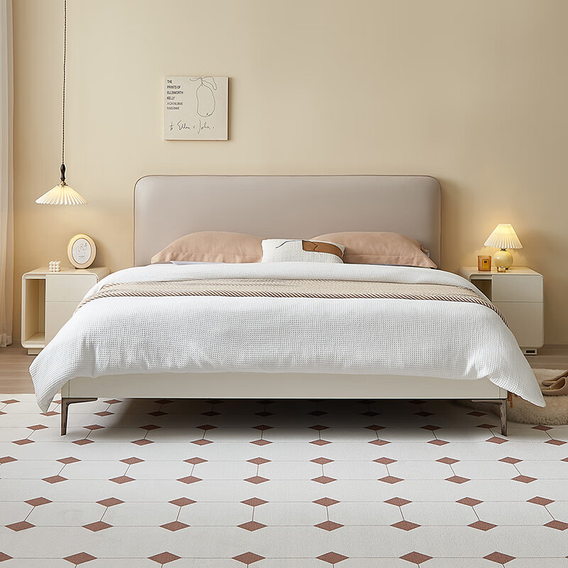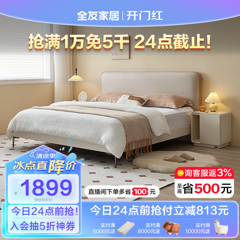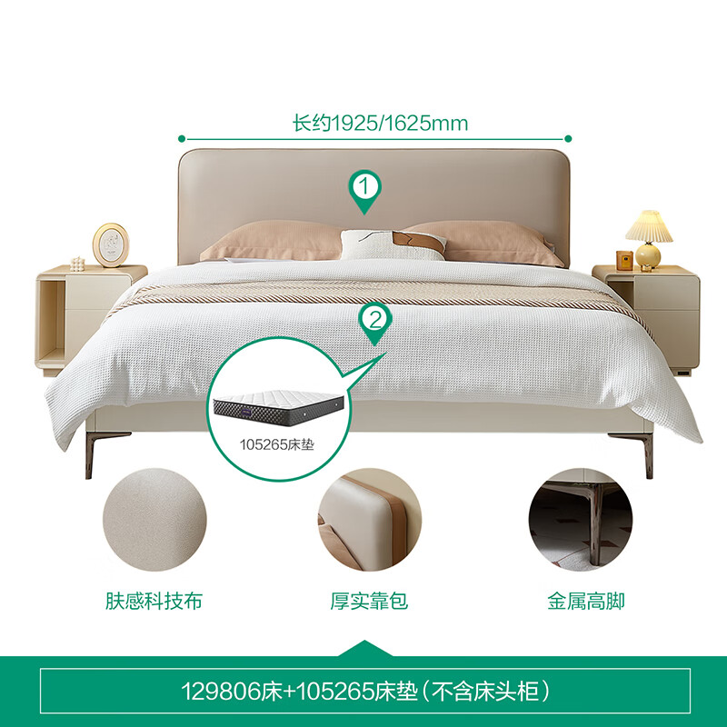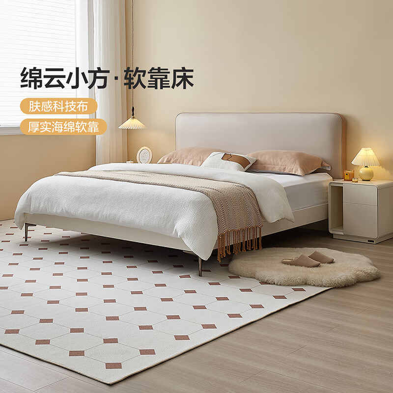 全友家居 科技布软包床简约现代奶油风主卧室床1.5米双人大床129806价格:2712.86元!