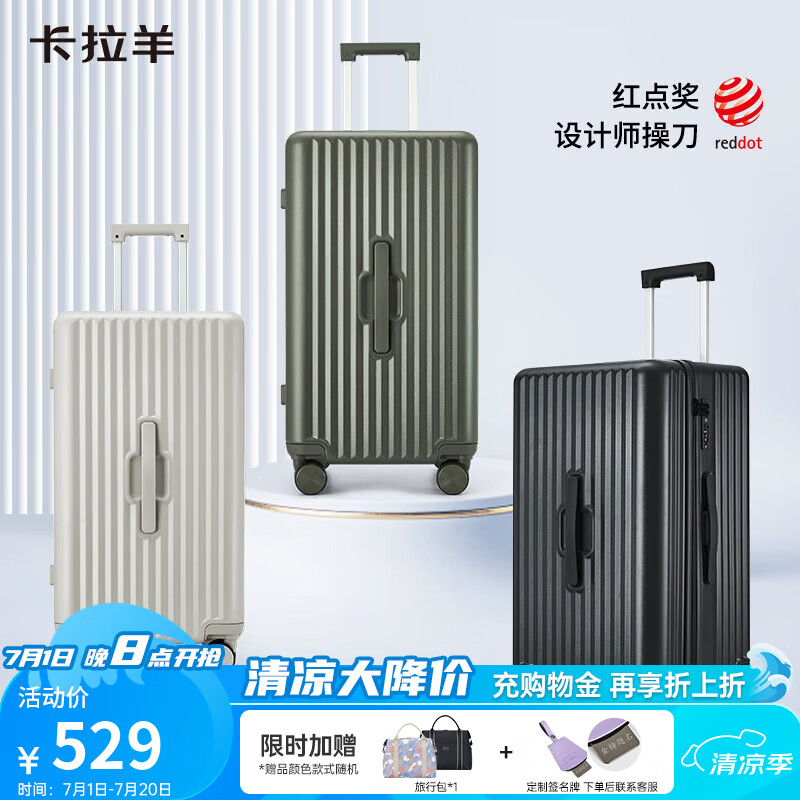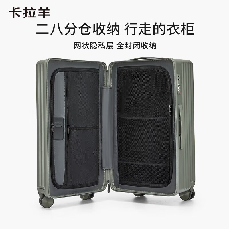 卡拉羊行李箱可登机20英寸大容量拉杆箱男女二八开魔方箱CX8118夏日胡杨价格:629.00元!