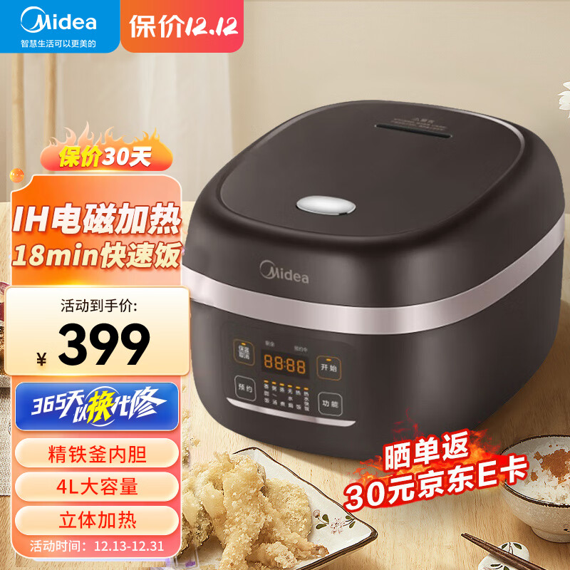 美的电饭煲 家用4L大容量IH电磁加热 一级能效 智能电饭锅多功能微压闷香精铁釜内胆不粘锅快速饭 4升容量丨一级能效丨MB-HF4OC9-FS IH电磁加热价格:499.00元!