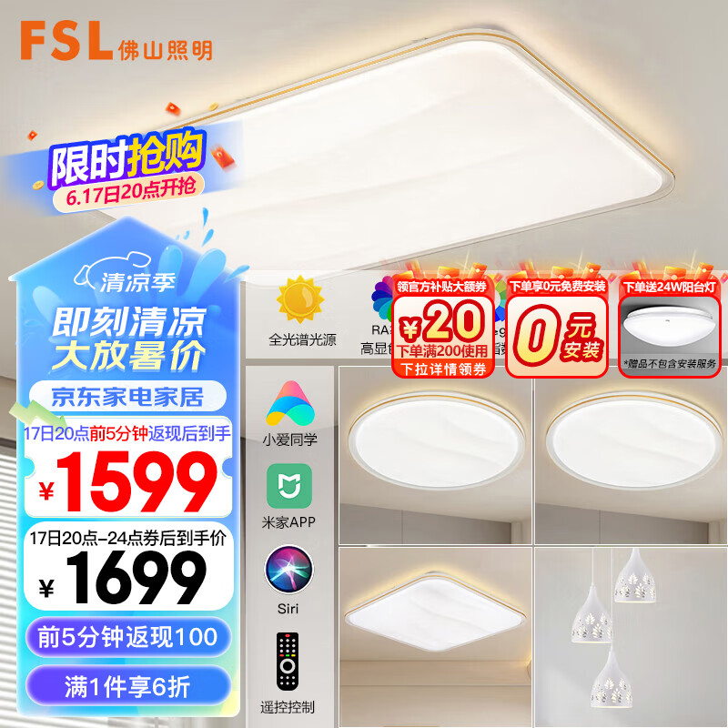 FSL佛山照明LED灯具套餐客厅卧室吸顶灯低蓝光护眼高显智控三室两厅价格:3165.00元!