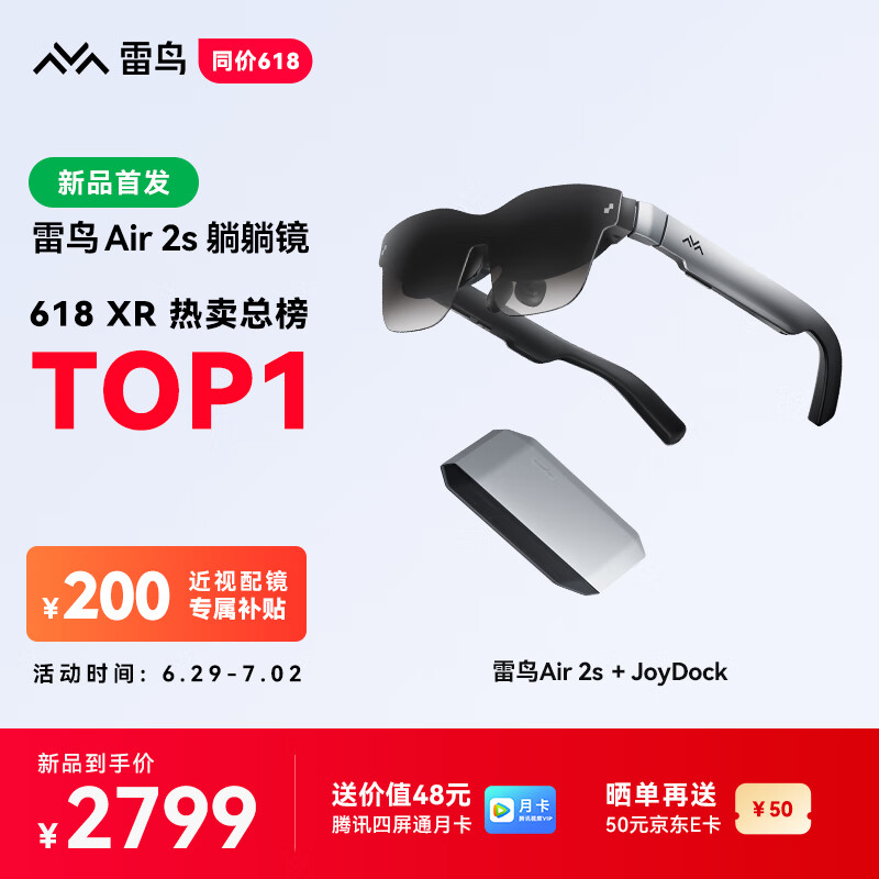 雷鸟Air 2S【新品】智能AR眼镜 躺躺镜 高清巨幕观影眼镜 120Hz高刷 非VR眼镜 JoyDock掌机巨幕价格:3099.00元!
