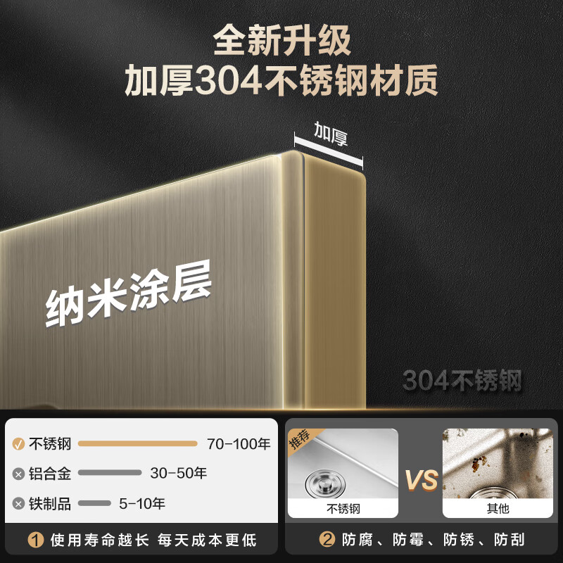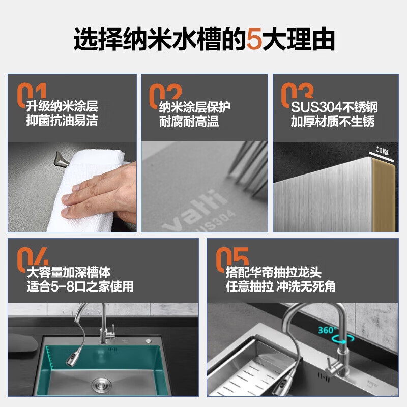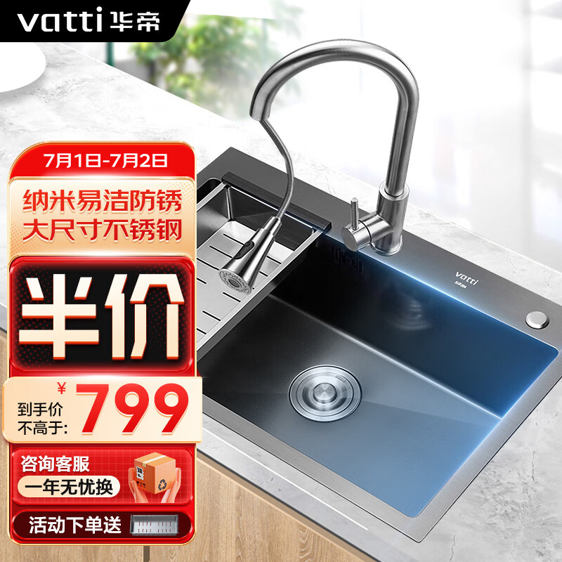 华帝(VATTI)厨房水槽大单槽洗菜盆一体盆 纳米304不锈钢 水池盘洗碗槽台下盆价格:1598.00元!
