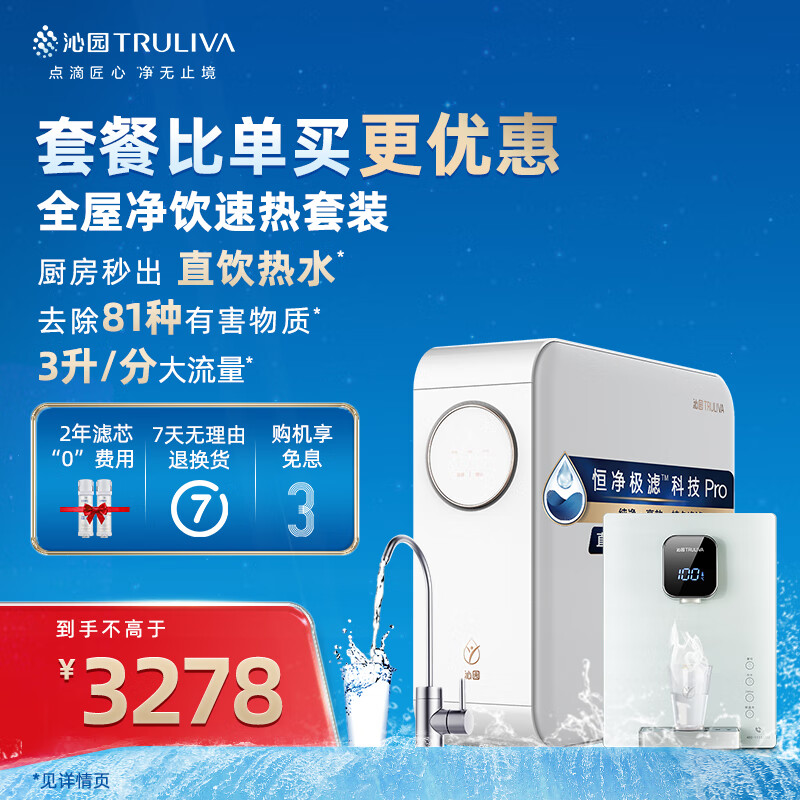 沁园(TRULIVA)小白鲸Pro1000G标准版 二件加热套装 净水器UR-S51045+加热管线机LNW580-5W价格:3278.00元!