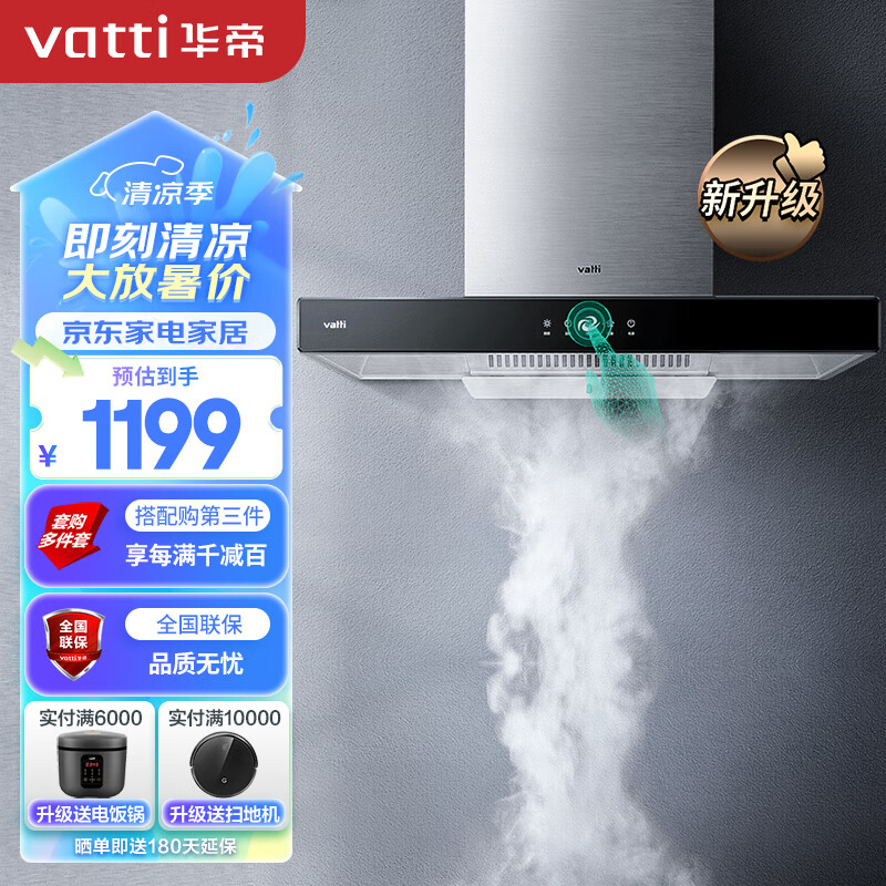 华帝(VATTI)抽油烟机 i11101 欧式家用吸油烟机 20立方米大吸力 小尺寸 智能触控油烟机 以旧换新价格:1299.00元!