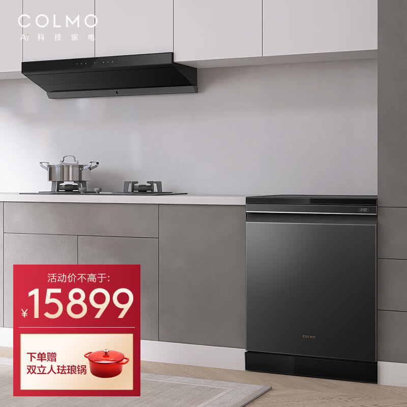 COLMO 厨房烟 灶洗三件套 15套独嵌两用洗碗机 28大风量 5.2kW火力 高温蒸汽洗烟灶套装G05+S68MAX+EF2 价格:15899.00元!