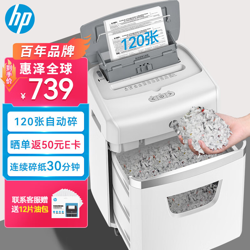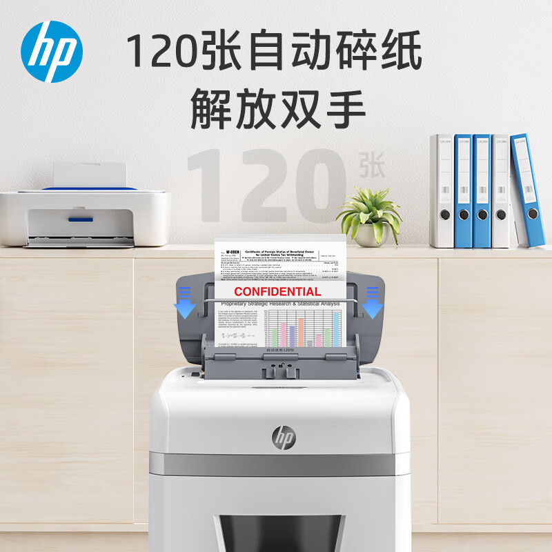 HP惠普 全自动120张碎纸机 高保密办公大型商用粉碎机 (自动碎持续30分钟) 手动单次12张 W23120CC价格:859.00元!