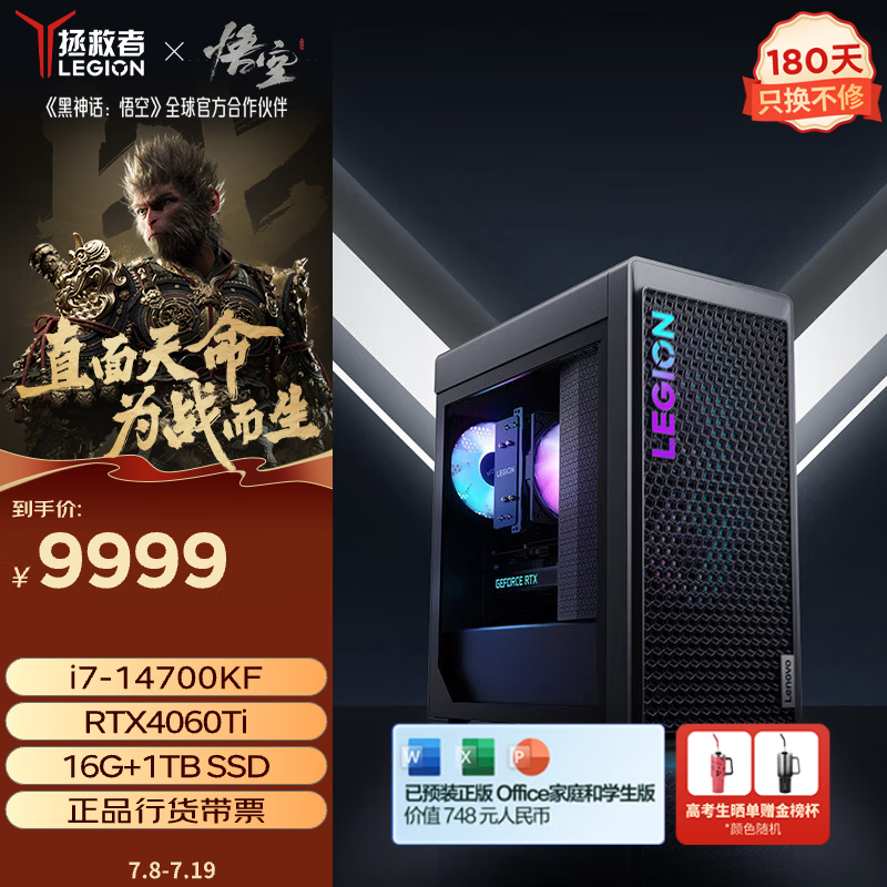 联想拯救者刃7000K游戏主机官方合作台式电脑14代i7-14700KF RTX4060Ti 8GB显卡16G 1T价格:9999.00元!