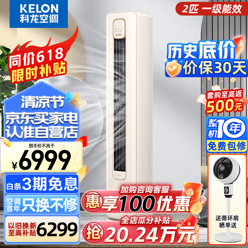 科龙2匹新风空调 大风量柔风速冷暖家用静享系列 一级能效省电 客厅立式空调柜机 KFR-50LW/LW1J-X1价格:6776.00元!