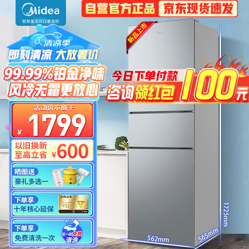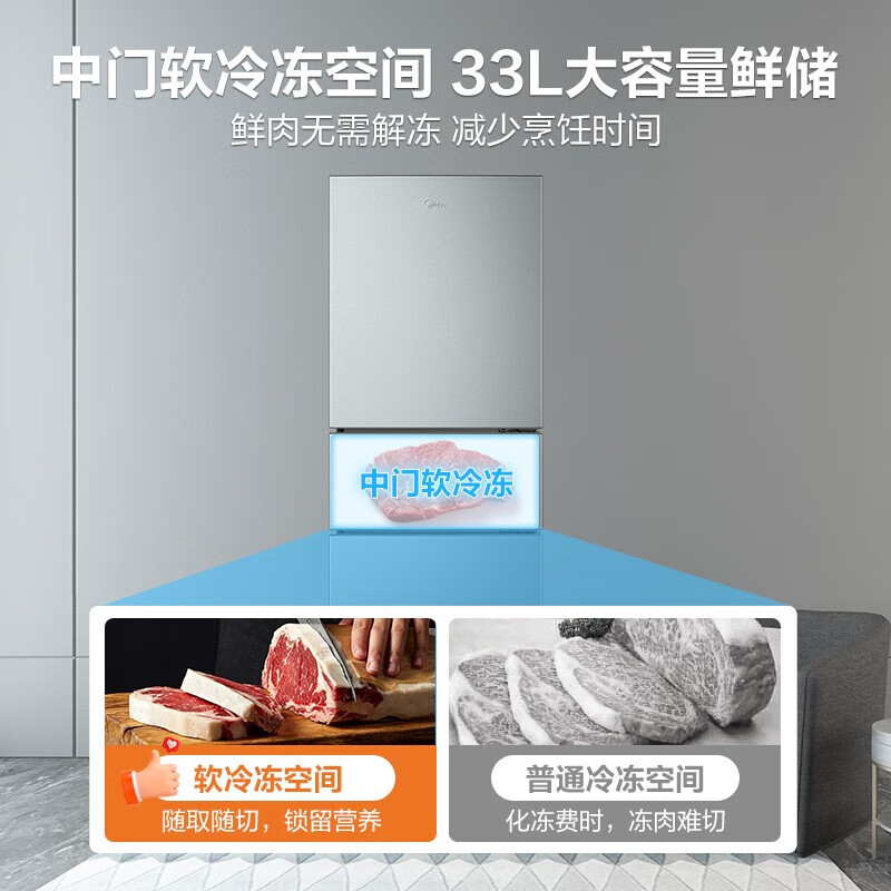 美的(Midea)239升三门三温电冰箱风冷无霜节能小户型租房家用保鲜省电软冷冻小冰箱BCD-239WTM钛钢灰价格:1698.00元!