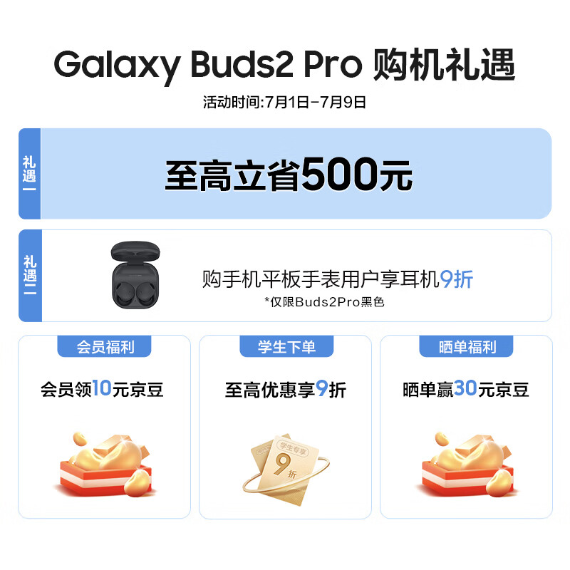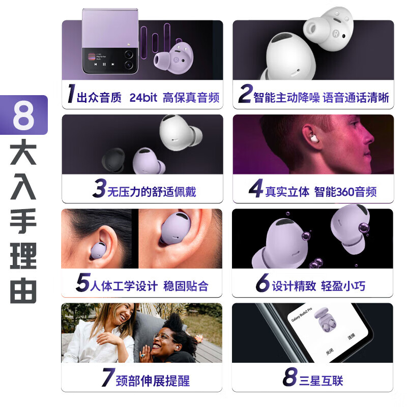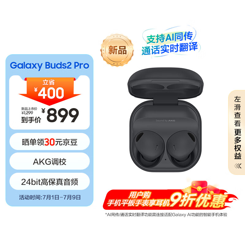 三星Galaxy Buds2 Pro 真无线蓝牙耳机智能降噪运动耳机/AKG调校/24bit高保真音频/IPX7防水 哥特太空价格:899.00元!