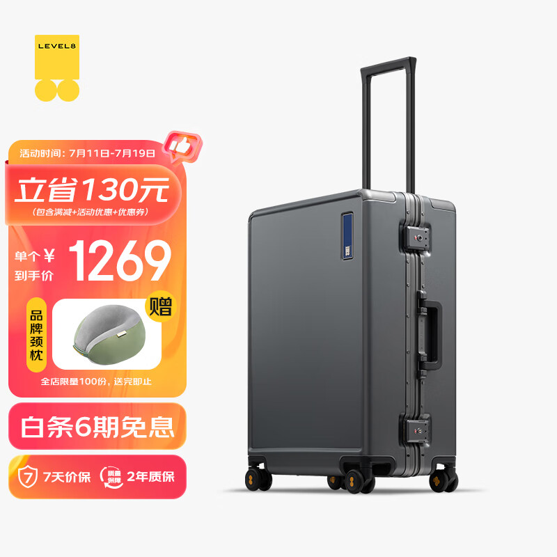地平线8号(LEVEL8)登机行李箱男女粗铝框旅行箱20英寸拉杆密码箱PC拉杆箱氦系列灰色价格:1399.00元!