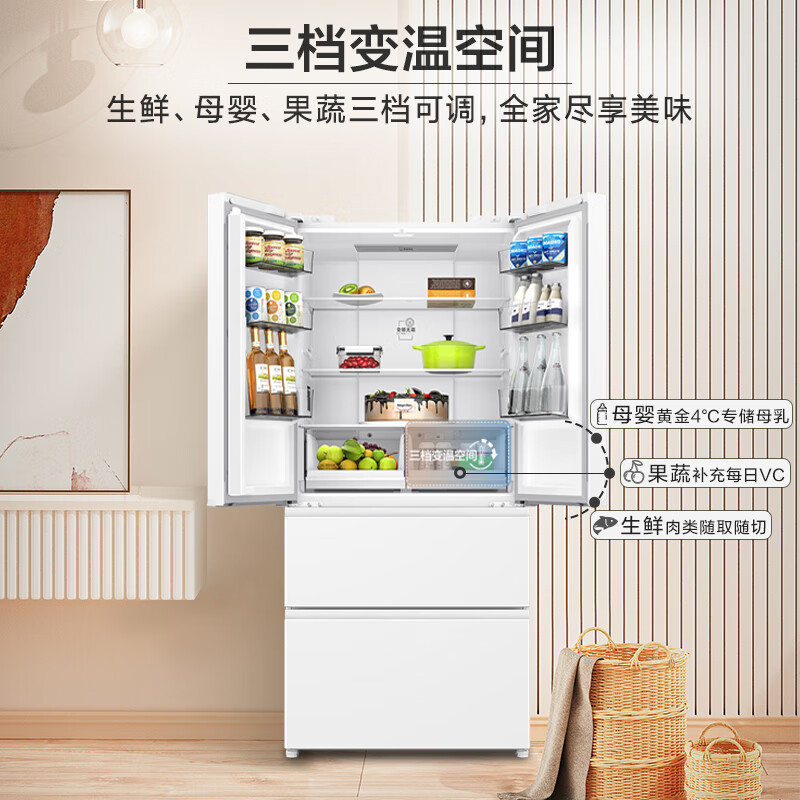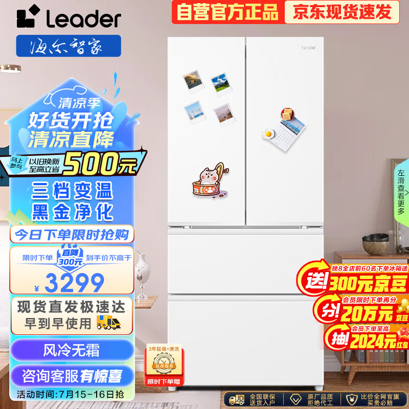 Leader 海尔智家出品466L多门四开门法式家用风冷一级变频节能净味超薄冰箱BCD-466WGLFD79M9U1价格:3599.00元!