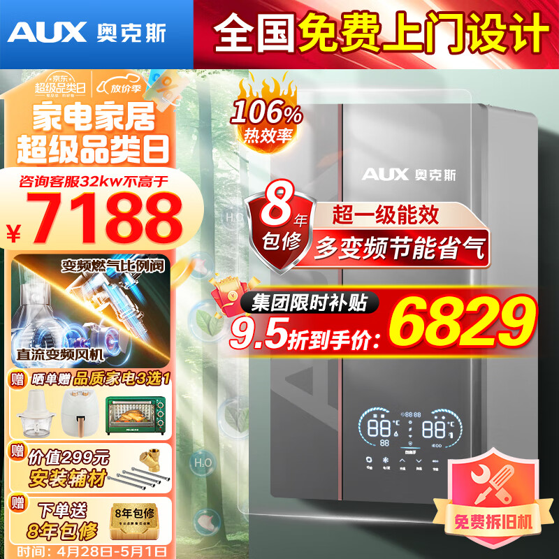 奥克斯(AUX)一级能效冷凝燃气壁挂炉 天然气采暖热水器地暖暖气片取暖锅炉 双变频省气LL1PBD32-MA-BL12价格:7188.00元!