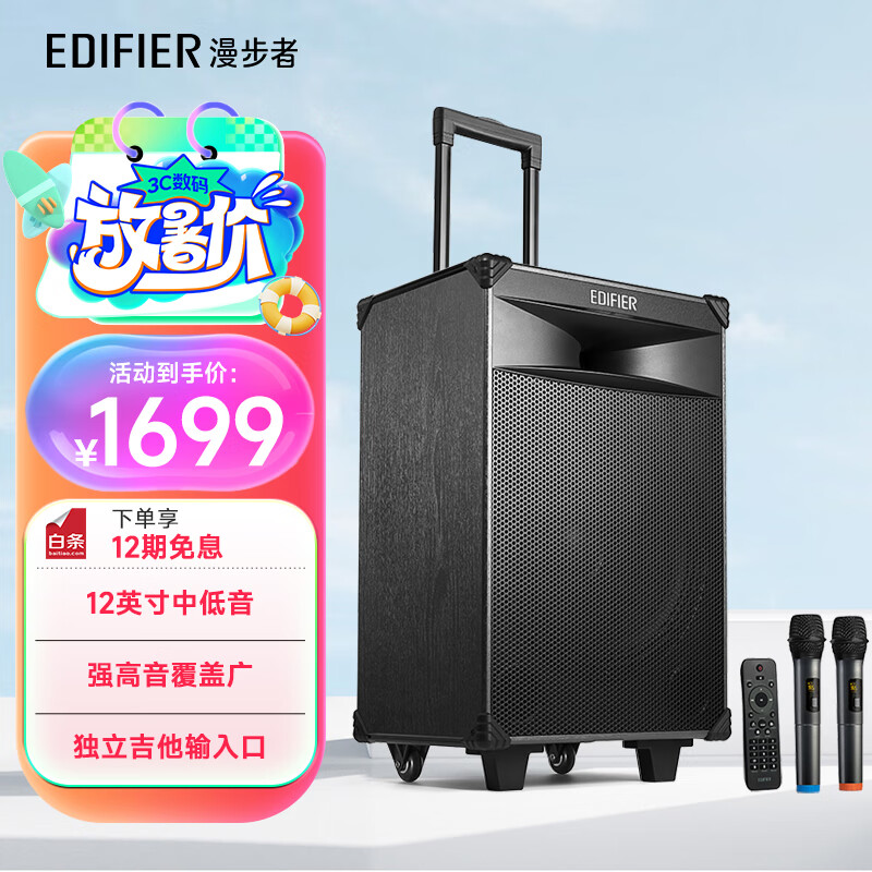 漫步者(EDIFIER)PW312 12英寸舞台级户外移动音箱 广场舞音箱 蓝牙拉杆音响 便携式音响 户外露营价格:1699.00元!