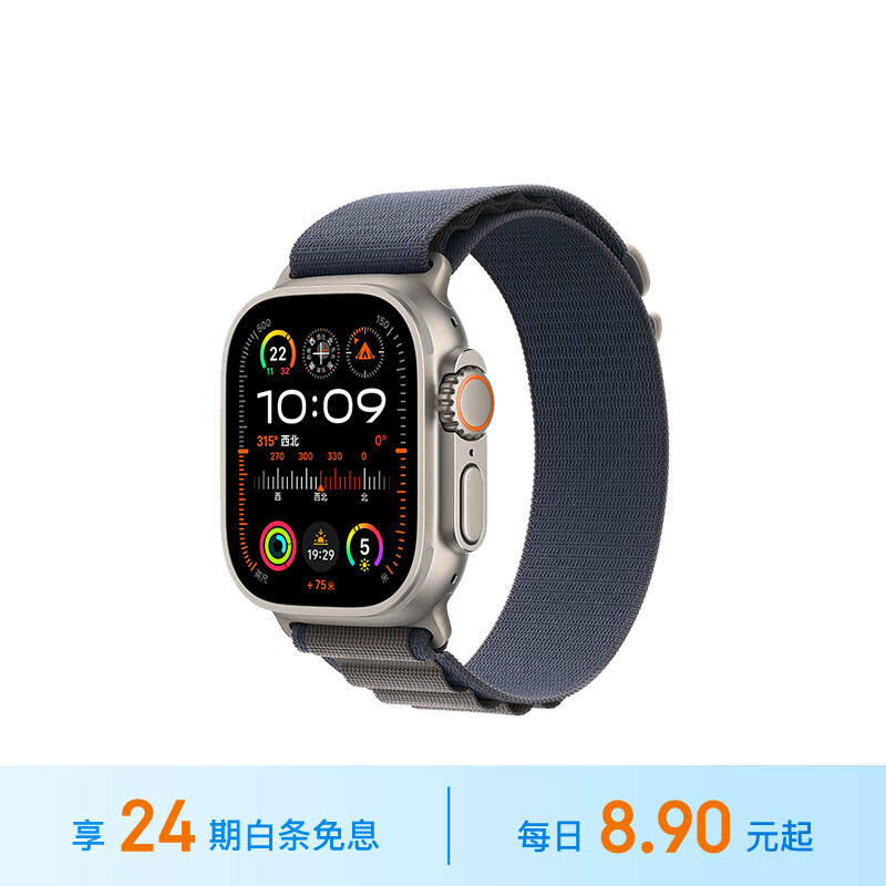 Apple【24期免息】Watch Ultra2智能手表GPS+蜂窝款49毫米钛金属表壳蓝色高山回环式表带小号MRFA3CH/A价格:6499.00元!