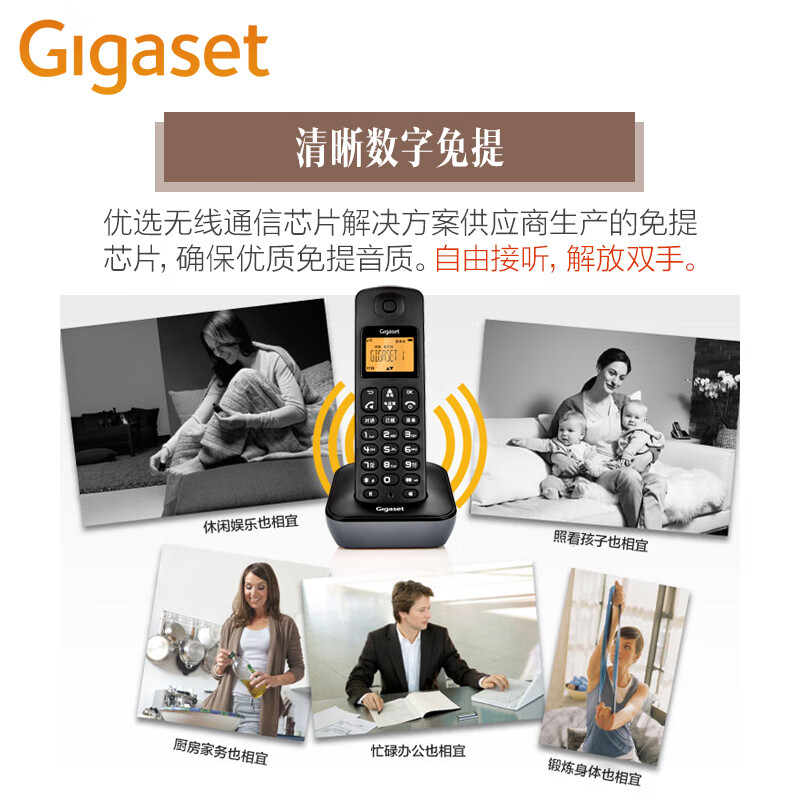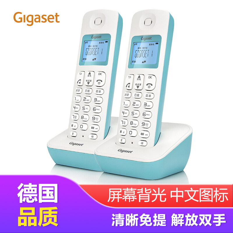 集怡嘉(Gigaset)无绳电话机 无线座机 子母机 办公家用 屏幕背光 中文图标 原西门子A190L一拖一(冰湖蓝)价格:299.00元!