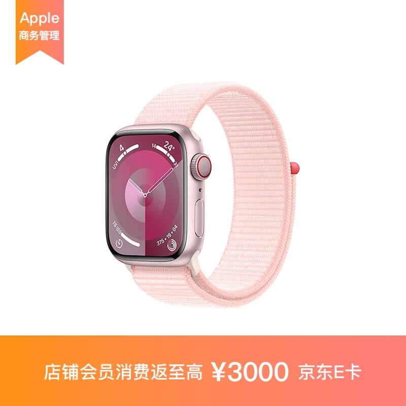Apple Watch Series?9 (GPS);41?毫米粉色铝金属表壳;亮粉色回环式运动表带 MR953CH/A*企业专享价格:2489.00元!