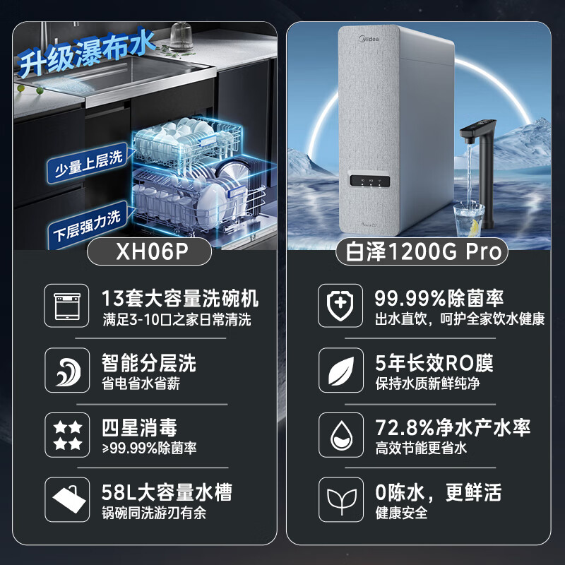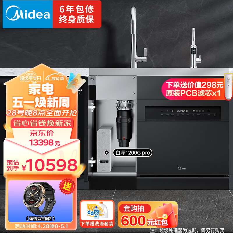 美的(Midea)集成水槽XH06P 集成水槽洗碗机一体式 集成洗碗机 水槽洗碗机 白泽1200g pro+XH06P价格:10598.00元!